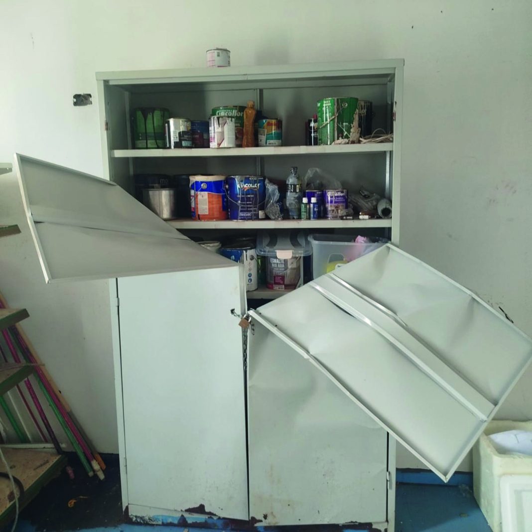 Entre os itens levados estão componentes da parte elétrica, padrão de energia, escada, pistola de pintura, extensão, lixadeira e esmerilhadeira. Além disso, armários foram danificados durante o ocorrido.