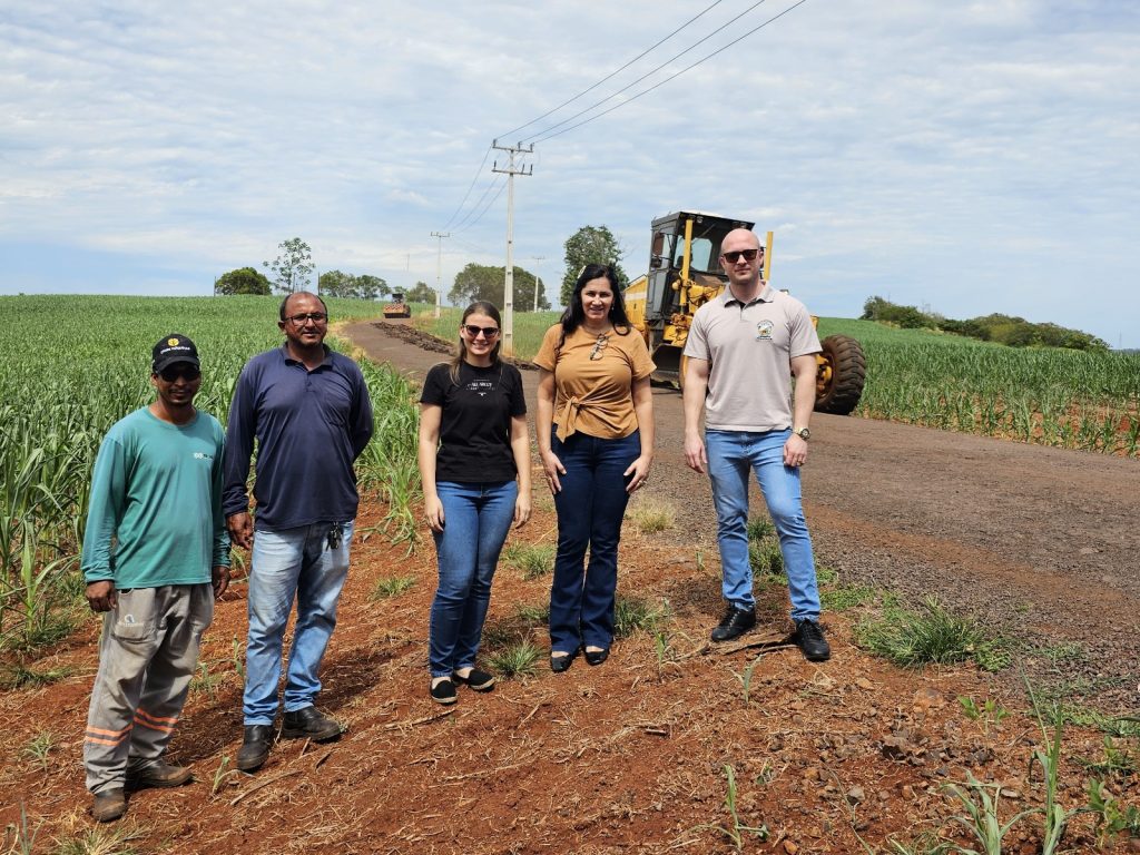 Na manhã dessa segunda-feira (16/03), a Prefeita Elza Haase Rodrigues, juntamente com a Secretária de Obras e Engenharia, Bruna Faveri e o Engenheiro Civil Tiago Visnieski esteve na Estrada Jacaré para acompanhar o inicio dos serviços de pavimentação asfáltica. A obra está sendo viabilizada através do Convênio nº 642/2025, firmado junto a Secretaria de Estado da Agricultura e do Abastecimento (SEAB).