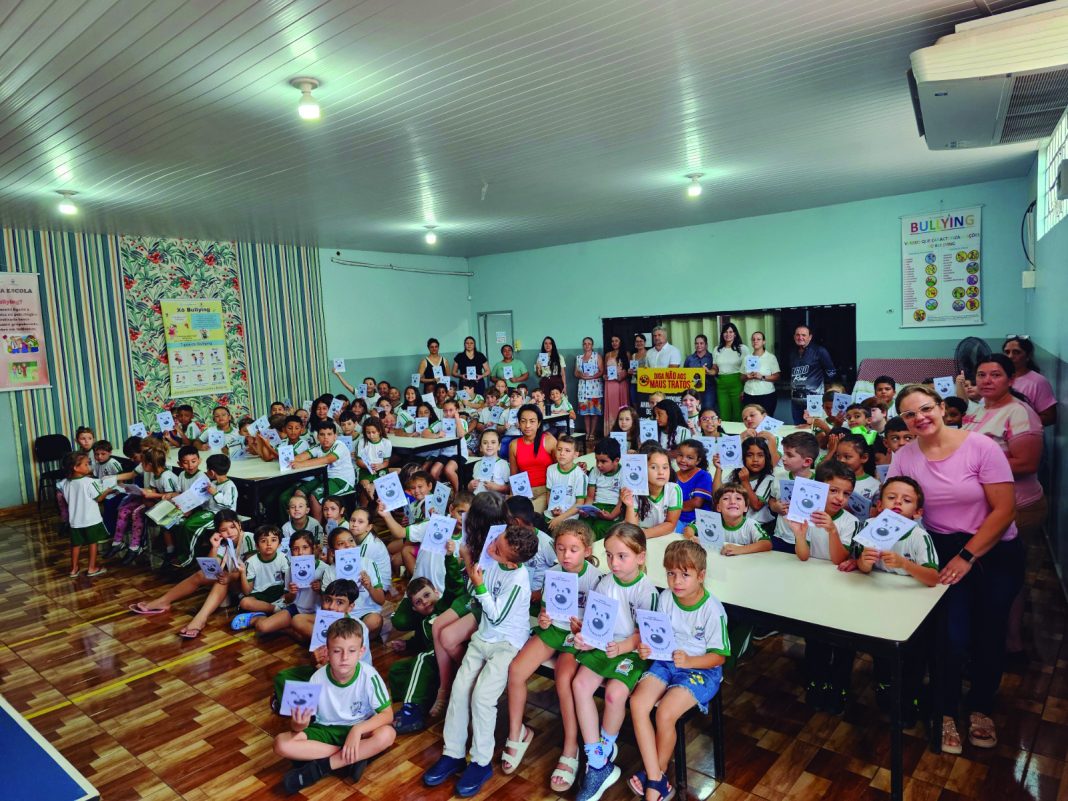 No final da atividade, foi realizada a entrega de uma cartilha educativa sobre o tema, que será trabalhada pelos professores com os alunos em sala de aula.