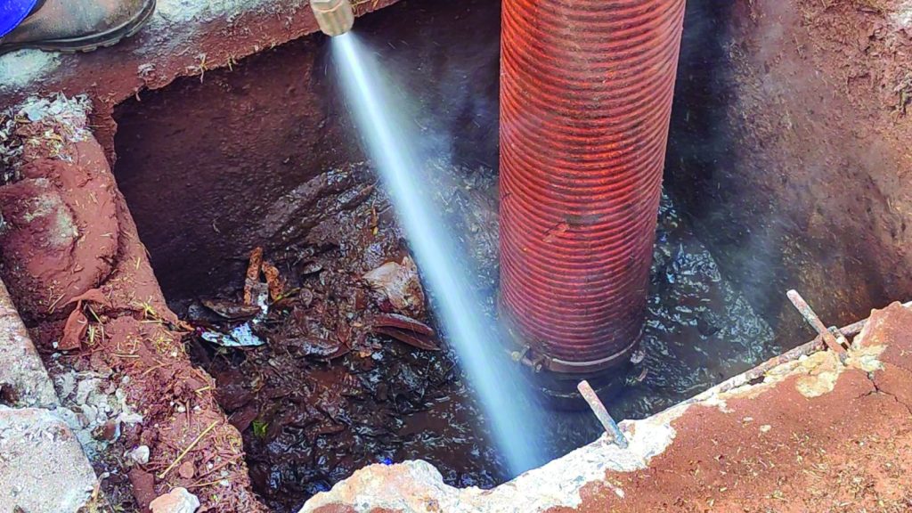 O equipamento utilizado realiza a limpeza das galerias pluviais por meio de jatos de água em alta pressão, removendo completamente resíduos acumulados. Entre os materiais encontrados com frequência estão areia, folhas, garrafas PET, restos de construção e até lixo doméstico, que acabam bloqueando o escoamento da água da chuva.