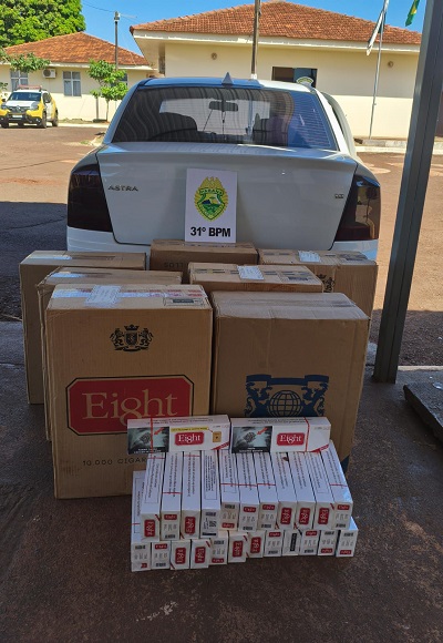 Durante a abordagem, o motorista confirmou que transportava cigarros. No interior do carro, os policiais localizaram sete caixas, totalizando 375 pacotes, além de outros 25 pacotes avulsos, todos de origem estrangeira.